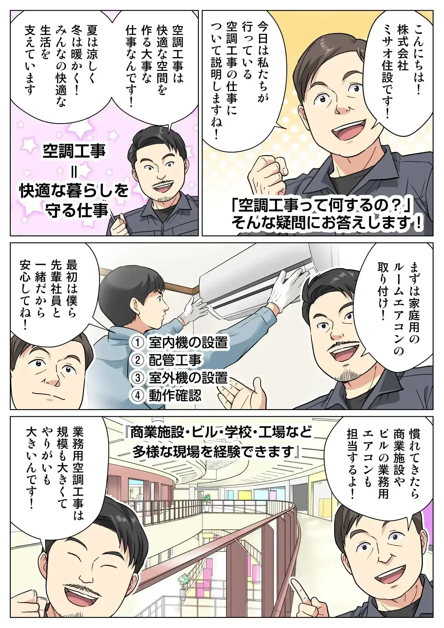 ミサオ住設が手がけるのは、エアコンをはじめとした空調設備工事。